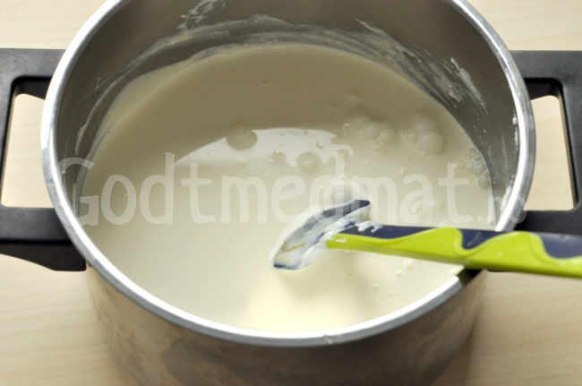 Stek bunnen 5-8 minutter på 180 grader. Deretter ta den ut av ovn, avkjøl og pakk kakeformen i 3 lag med alimuniumfolie (slik at kake blir ikke vått på grunn av vann og damp).